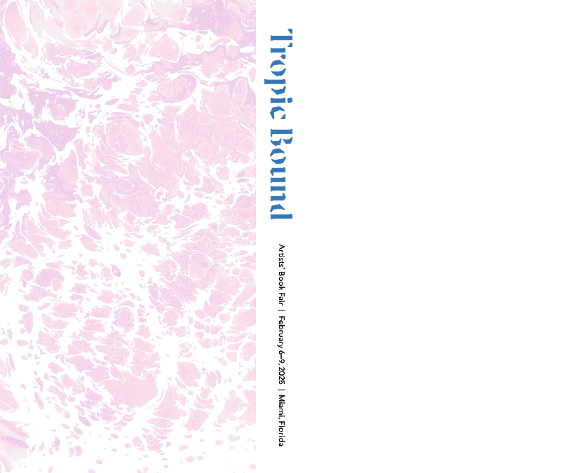 Special thanks to Tropic Bound 2025 sponsors, supporters and cultural partners: the Miami Design District, LogicArt Fine Art Services, University of Miami Libraries, Lisa B. Palley, The Kelmscott Bookshop, Vamp & Tramp Booksellers, Lux Mentis Booksellers, Salmon & Dulberg Dispute Resolution, AFAR Magazine, Bromer Booksellers, Abecedarian Artist’s Books, Carolyn Shattuck, The Tonkinson Foundation, Sweat Records, Center for Subtropical Affairs and private donors.